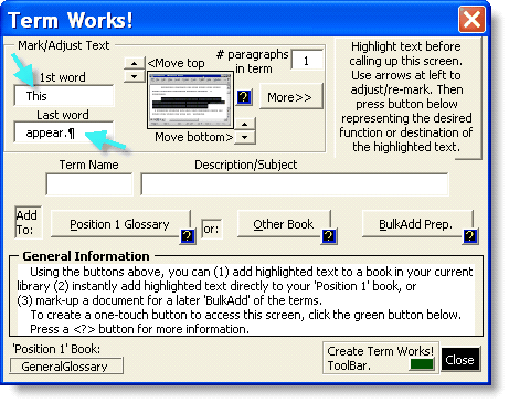 (2) Press the keyboard combination <Alt-G> ‘against’ the highlighted text. The Term Works! screen (Figure 1) will quickly appear.