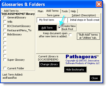 Pathagoras will ask you whether you want the book to be a glossary or a folder of terms. See the discussion above as to which is ‘better.’ Then it will ask where you want to save the new book. Navigate to the desired location. Pathagoras will save the text in the new book, using the name and subject you provided.